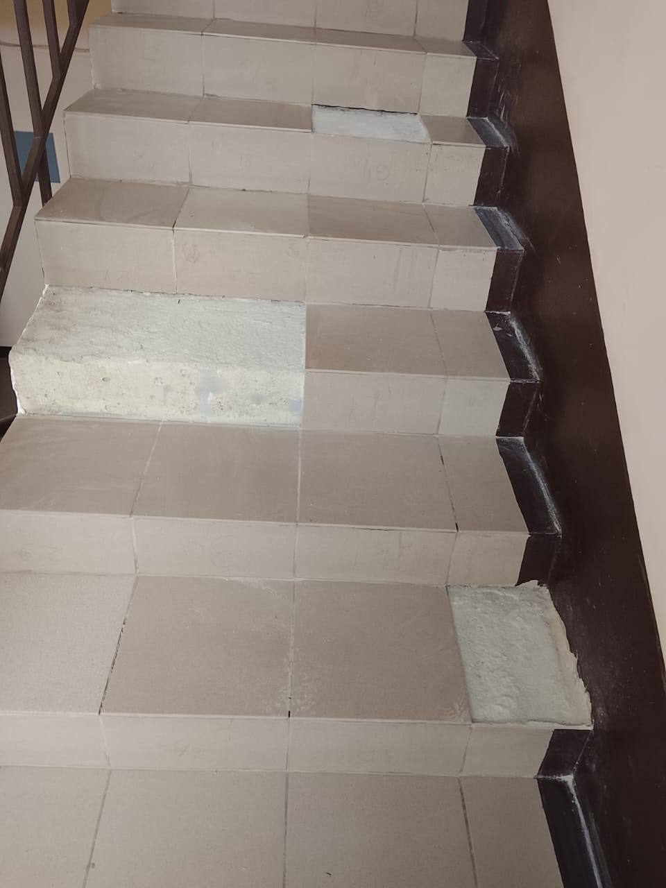 Провели регулярный ремонт плиточного покрытия в местах общего пользования в доме на 1-й Сахалинский проезд, 14