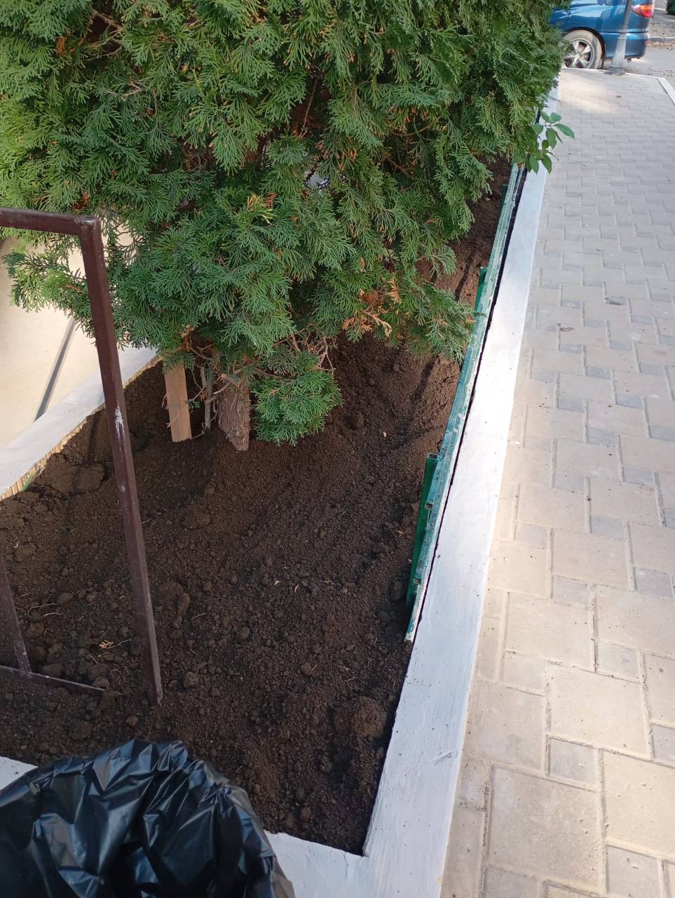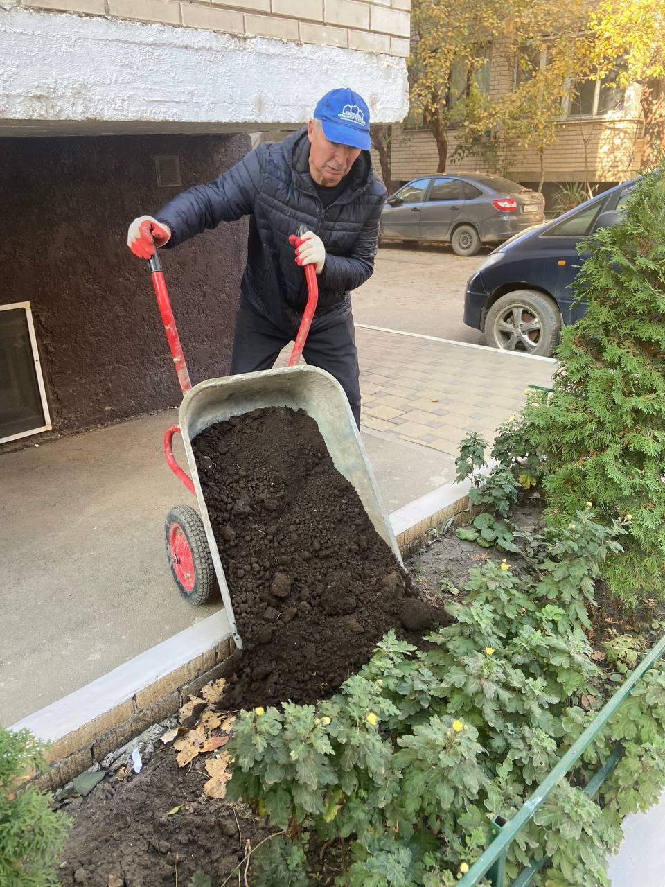 Проведена работа по засыпке грунтом всех клумб на придомовой территории.